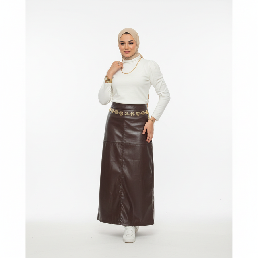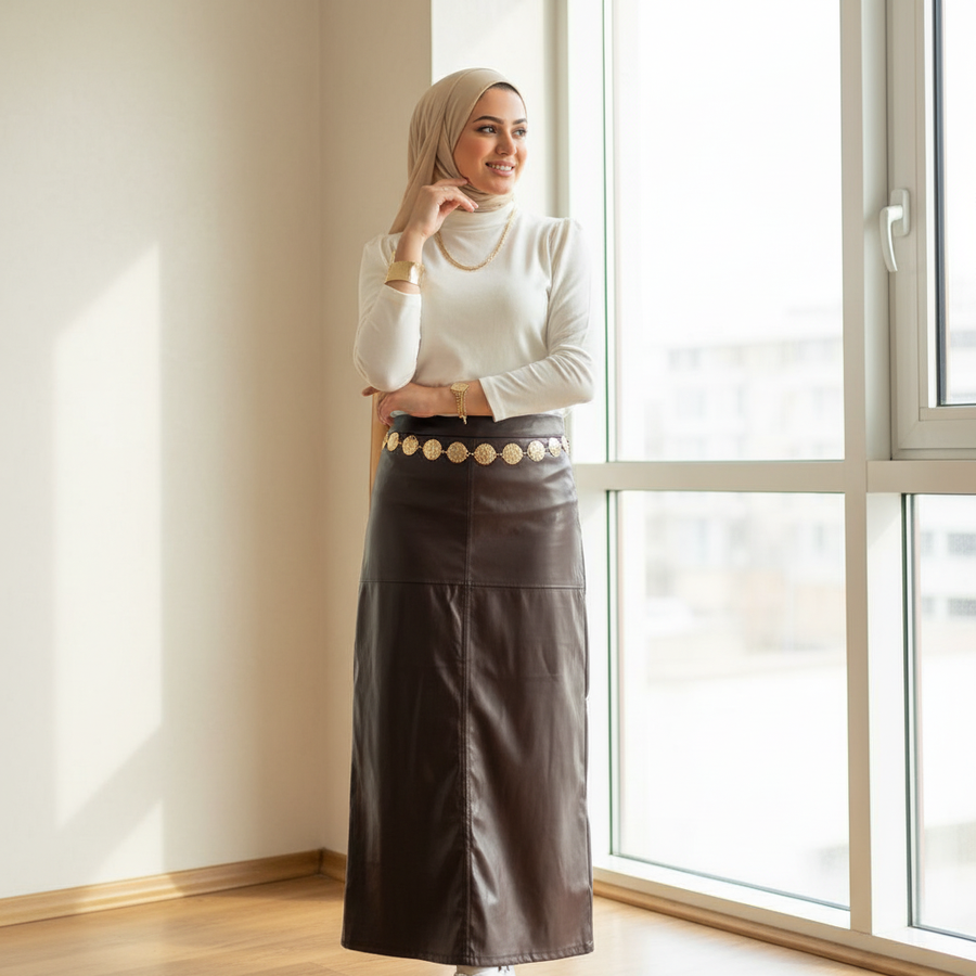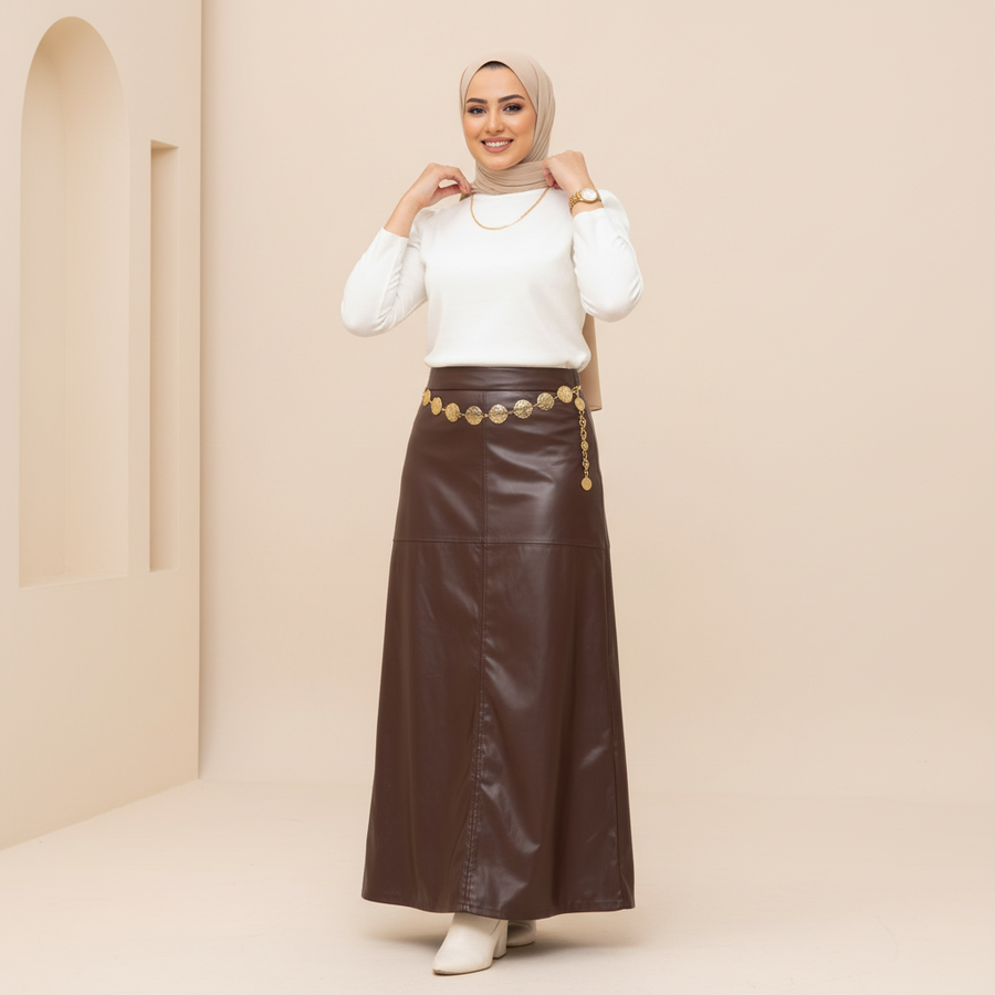 جلد صناعي سيجار لامع – مبطن من الداخل – ناعم على البشرة، أنيق، وعملي جدًا للشتاء.