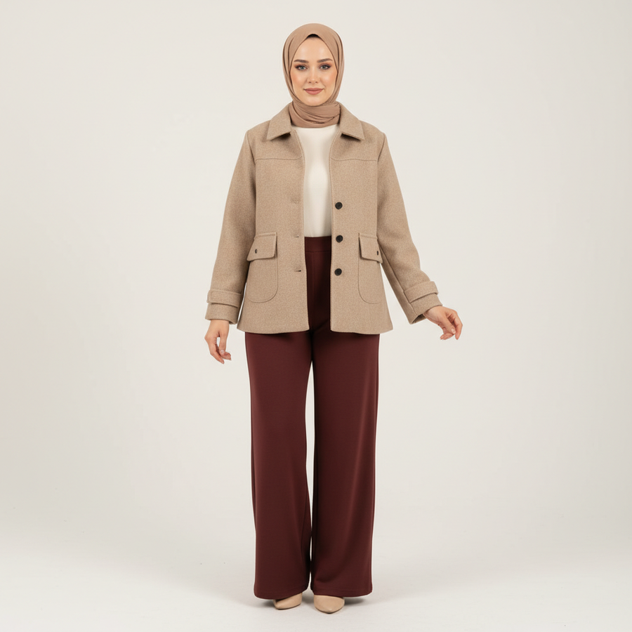 القطعة اللي بتدور عليها كل بنت في الشتا. لون (Latte) هادي بيليق على كل حاجة، وتصميم واسع ومريح.