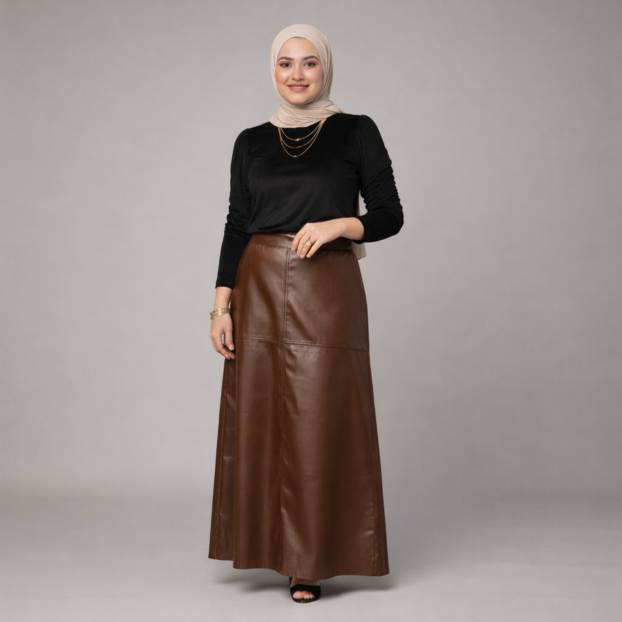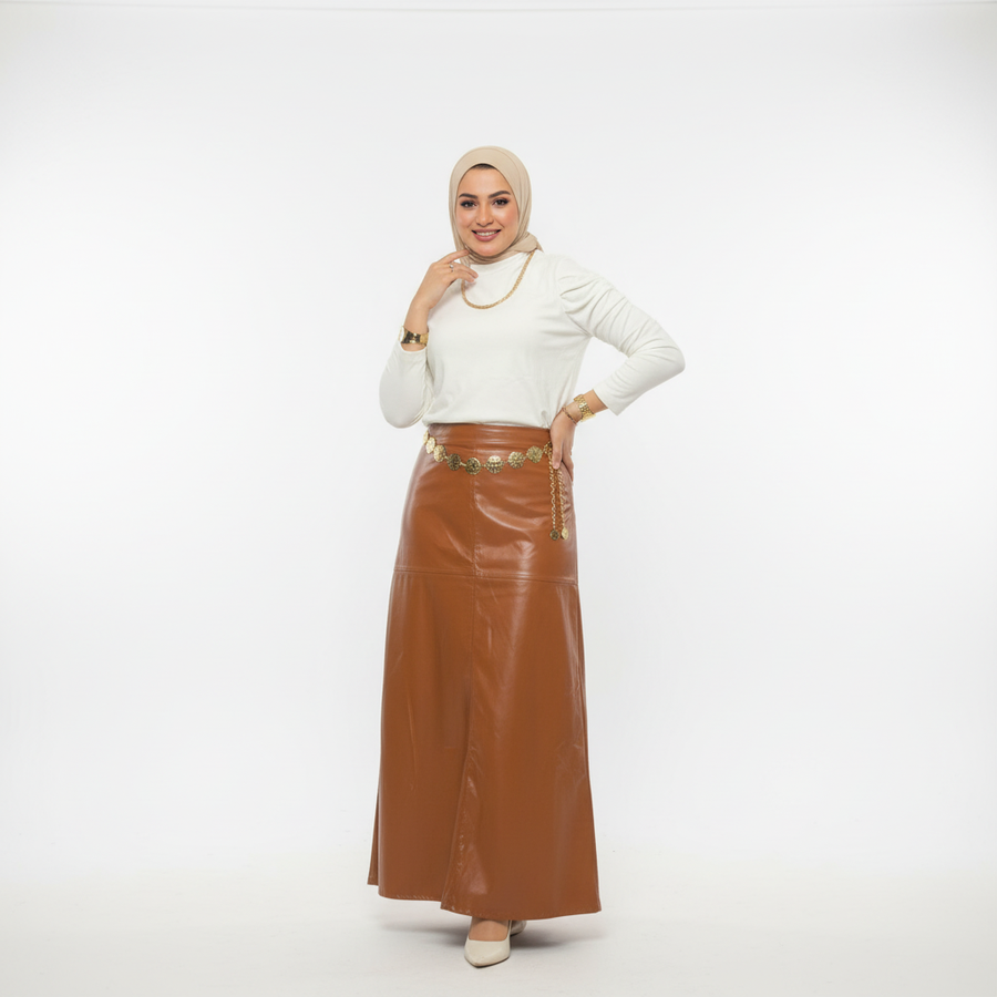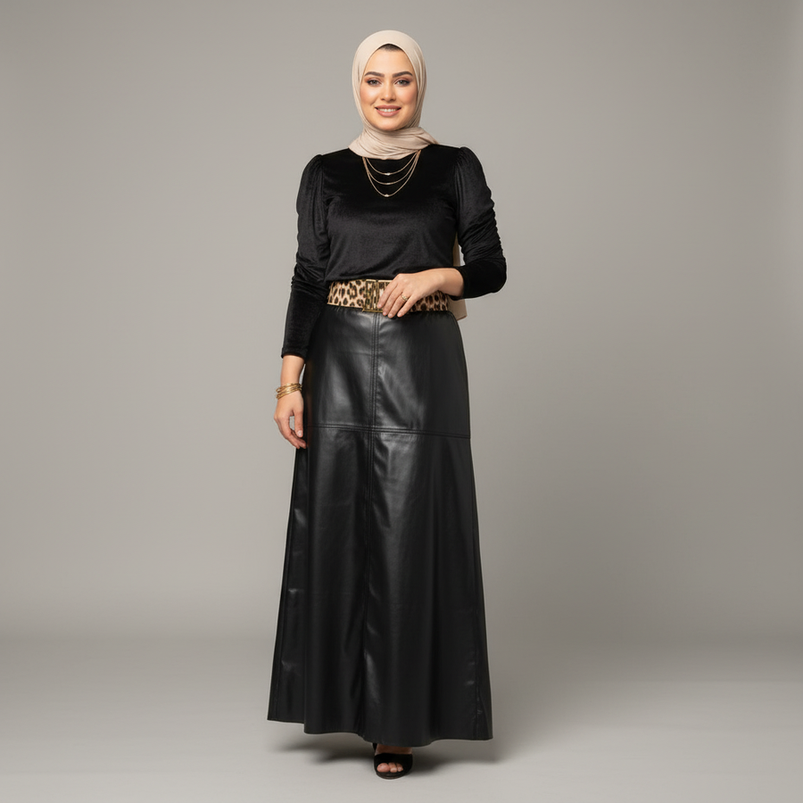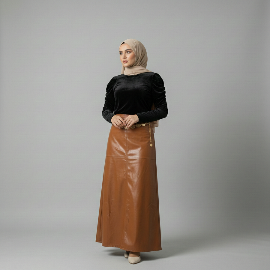 جيبة جلد سيجار + بلوزة قطيفة مستوردة